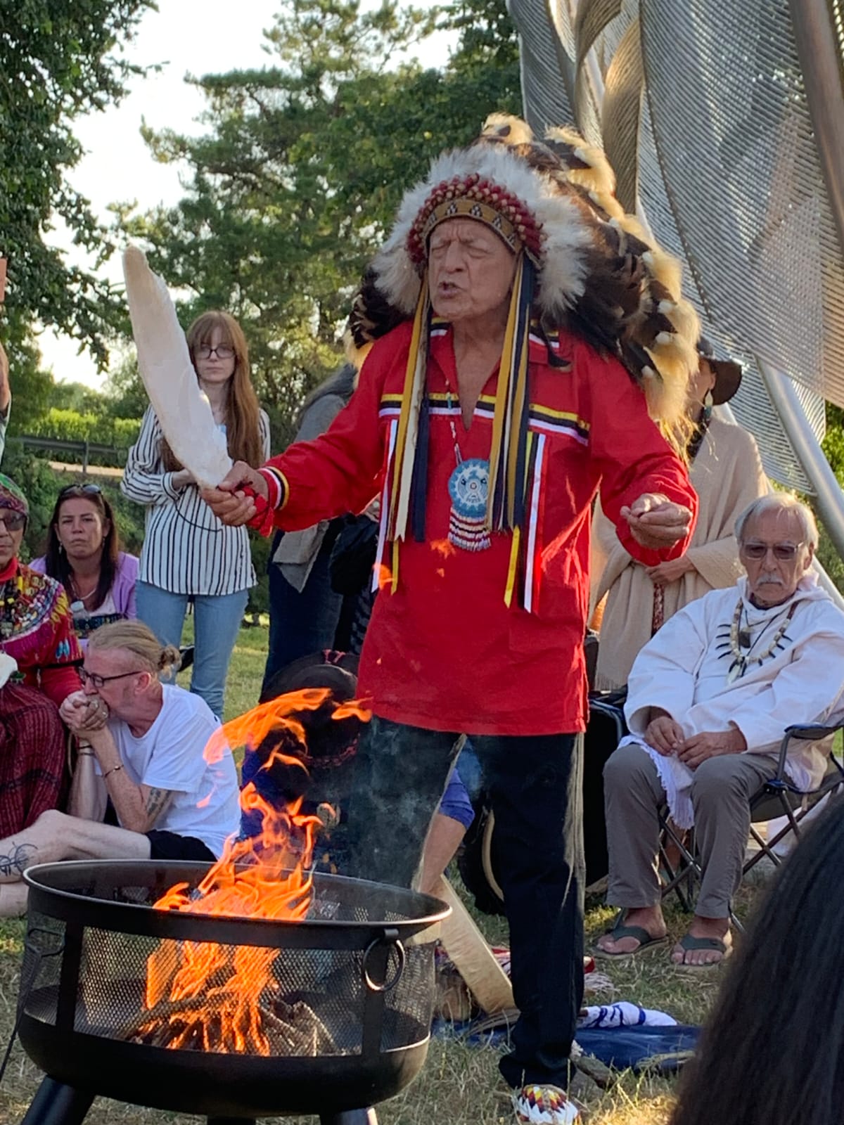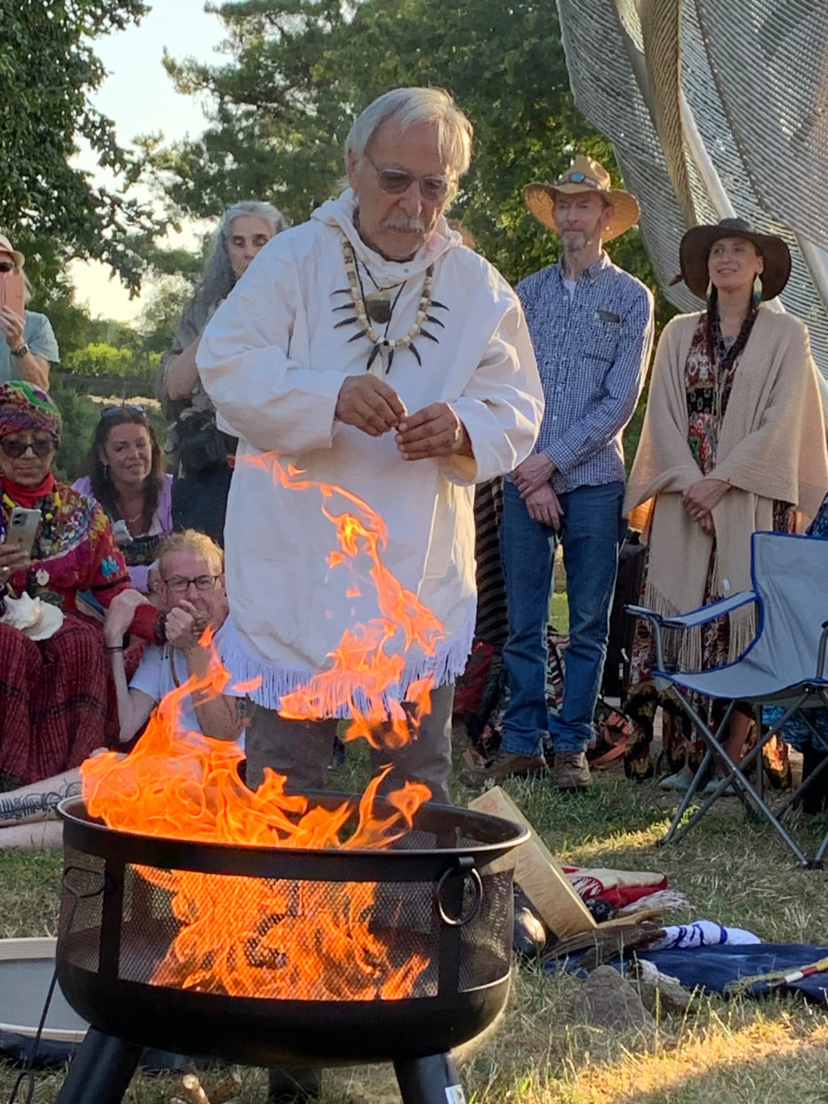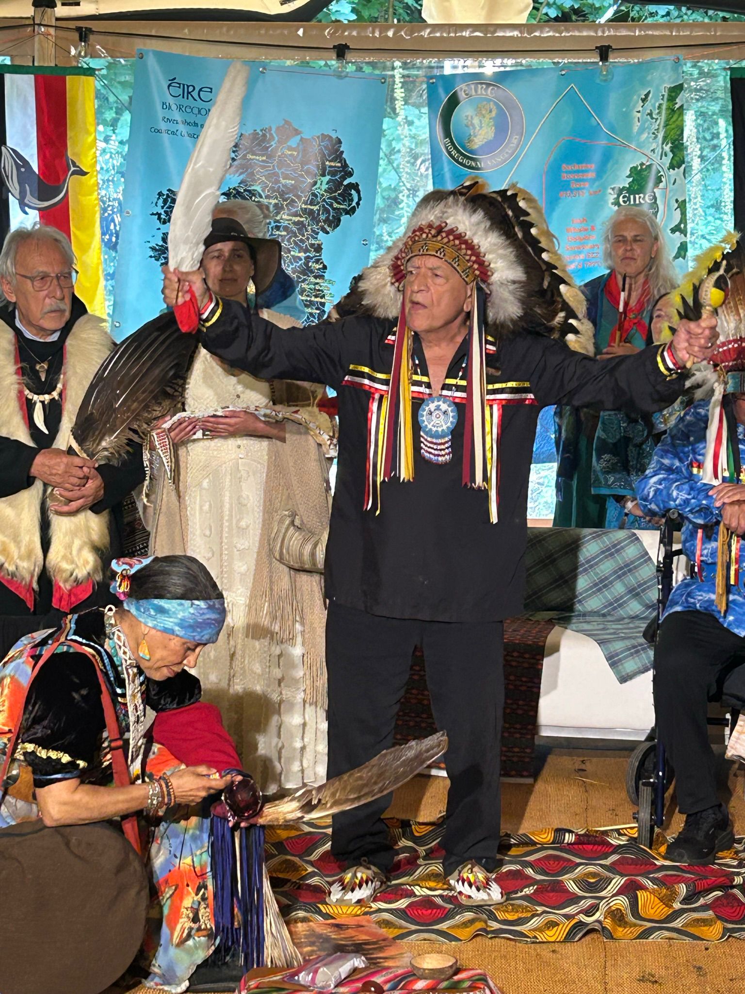 On the full moon of July 10, a sacred fire ceremony opened the World Peace Gathering at the Kindred Spirits Monument in Midleton, Co. Cork — a site honoring the 1847 Choctaw gift to the Irish.