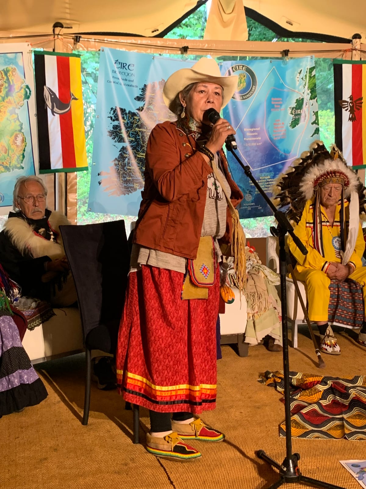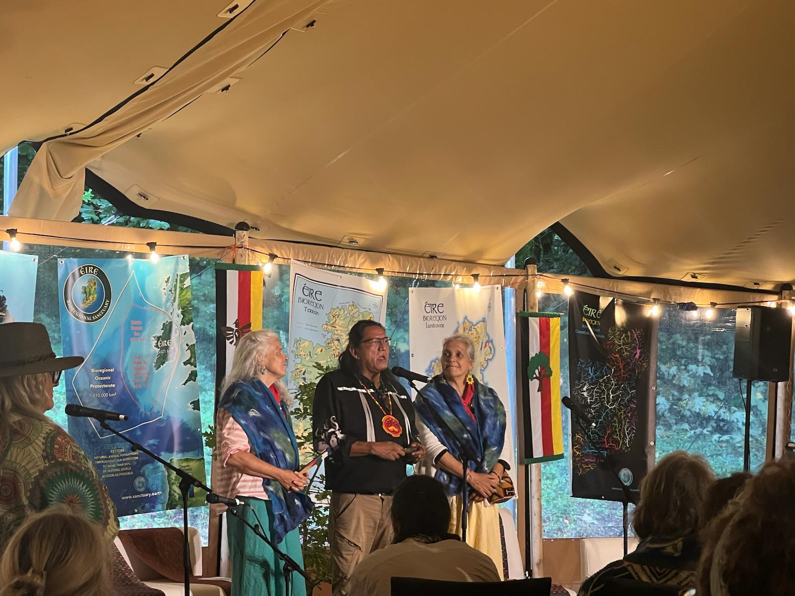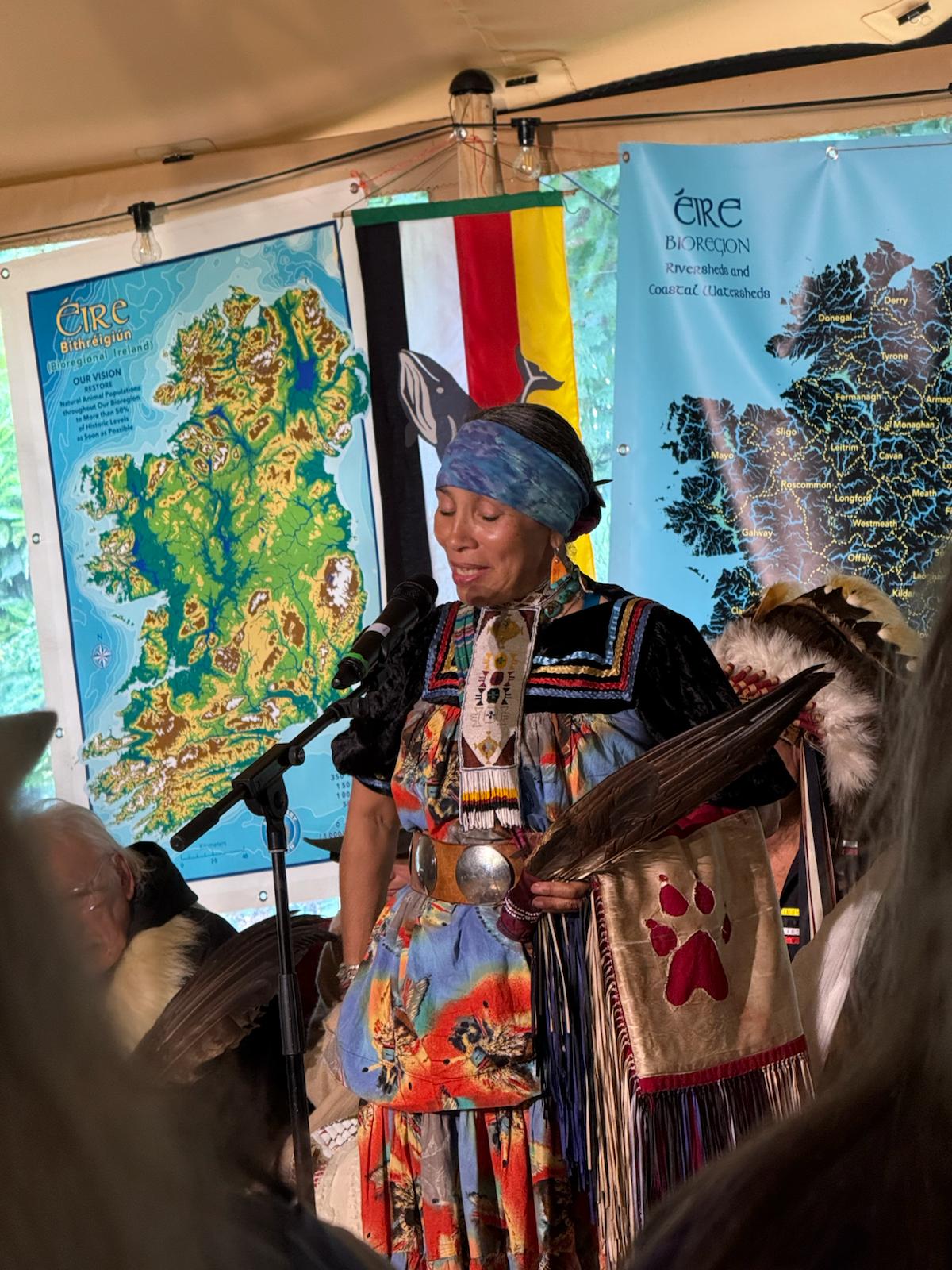 On the full moon of July 10, a sacred fire ceremony opened the World Peace Gathering at the Kindred Spirits Monument in Midleton, Co. Cork — a site honoring the 1847 Choctaw gift to the Irish.